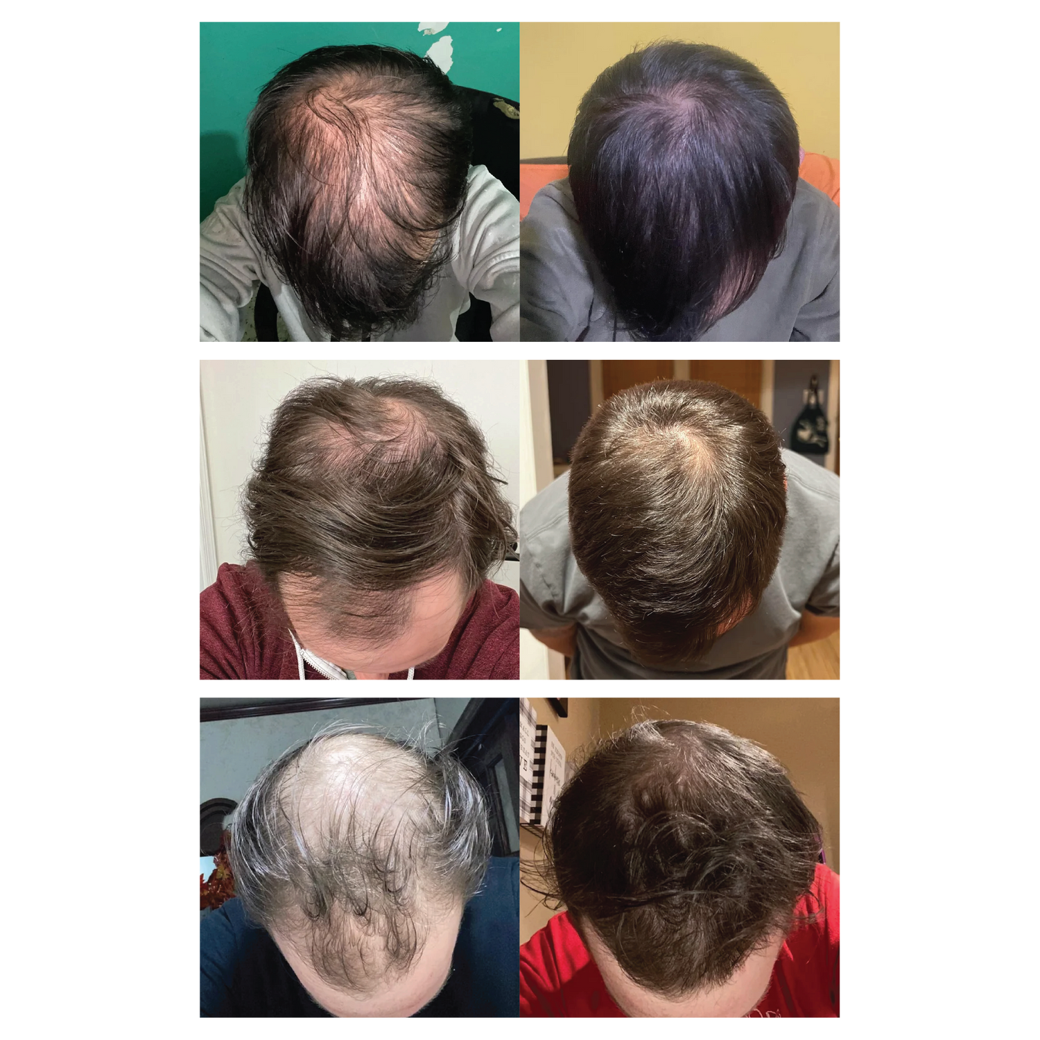 By beginning treatment, most patients stop further hair-loss from day one. Visible regrowth will usually be seen from 3-6 months onwards, and include a thickening of existing hair, the sprouting of new hairs, and a healthy darkening of hair colour.