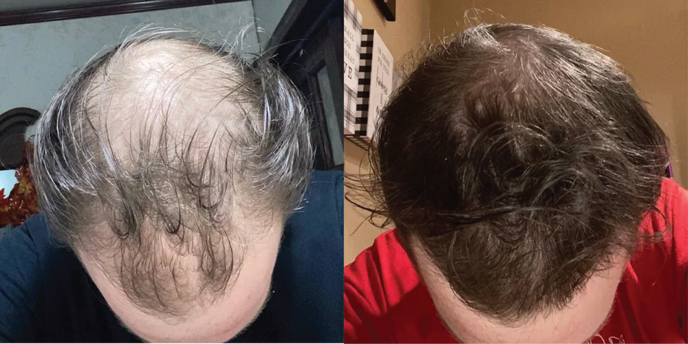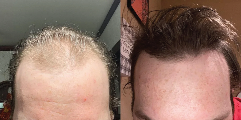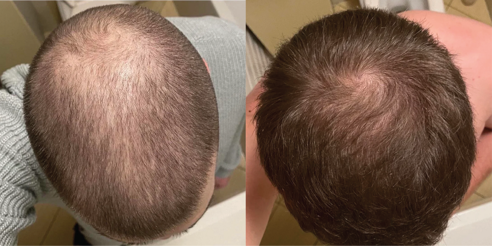 Just by starting your treatment, you will stop further hair loss from day one. Visible results will usually be seen from 3-6 months onwards, and include a thickening of existing hair, the sprouting of new hairs, and a healthy darkening of hair colour.